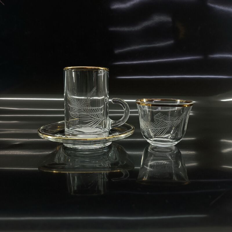 Each set include 6 tea cups, 6 saucers, 6 cawa cups. The Arabic Tea Cup is a beautifully designed coffee cup in Arabic style, perfect for enjoying your favorite hot beverages. This exquisite tea cup is not only a functional drinkware but also a piece of art that adds elegance to your tea time rituals.