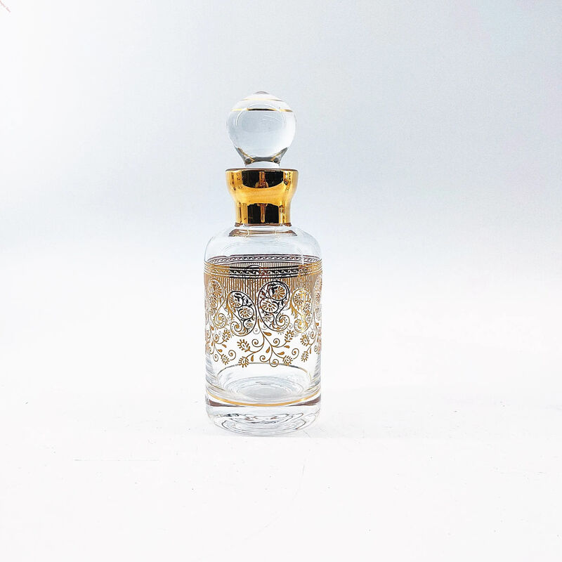 Glass Arabic Perfume Bottle – Round, Lightweight with Floral Pattern