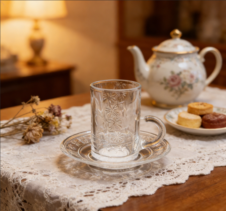 12Pcs Clear Glass Cup & Saucer Set – Ideal for Afternoon Tea Service & Special Occasion Gifting